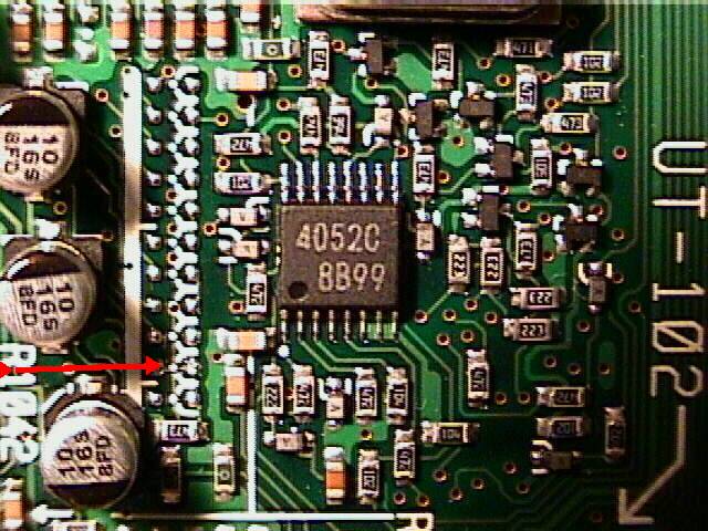 On MAIN BOARD under speaker near Xtal you can see two rows of solder dots for SMD components. Only on position 10 (from left) is diode (D2030), which is necessary to remove.