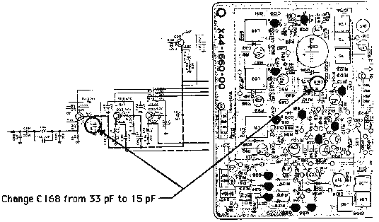 - On the RF unit (X44-1660-00) change C168 from a 33 pF capacitor to a 15 pF 50V capacitor.