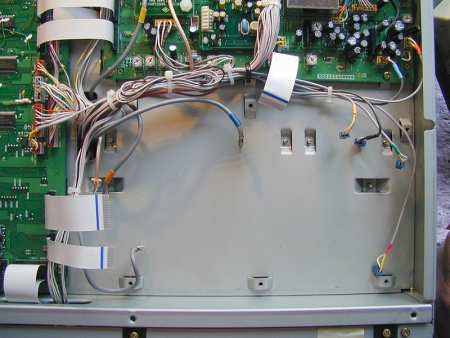 With the bottom cover removed, the board needs to be unplugged from various connections and six screws removed.
