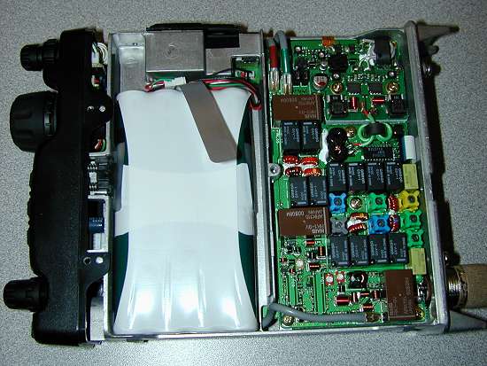 While I had the top off, I thought I may as well disrobe the rig completely and see what make her tick. Here are some photos of the underneath and front panel etc. The first picture shows the NICAD pack in place.