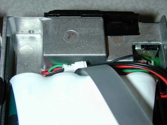 I also took the front panel off for a look - it simply clips onto the chassis over four little "pips" next to the screws that hold the front edges of the top and bottom panels in place. If you take it apart please be VERY careful not to damage the front panel connector ribbon or connectors - they look fairly delicate!